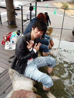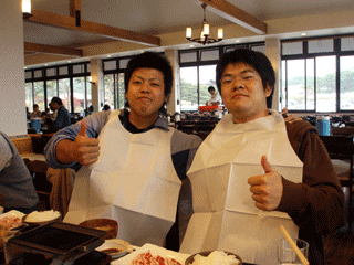 休憩場所にて 泰輔さん!! おなか、おなか |