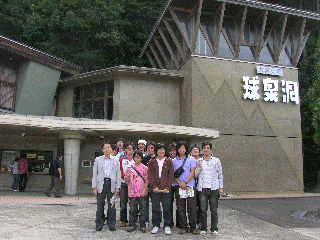 球泉洞の入り口で記念にパシャリ !!! ちなみに日本で一番長い鍾乳洞は岩手県にある安家洞だそうです。 |