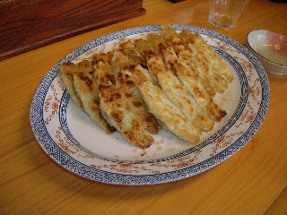 お腹もすいてきたので昼食をとることに ! 今人吉で一番熱い食べ物と言えば〜〜〜〜〜 そう !!“餃子”です。 というわけで今回は餃子の専門店の松龍軒で餃子を食べました〜。 なんと !!!松龍軒には餃子とビールしかメニューがありません。 ちなみにお腹をすかせた固機能メンバーがどれくらい餃子を 食べたかといいますと〜!!?? |