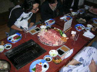 2日目の夕食は宴会場の座敷で焼肉食べ放題でした〜。