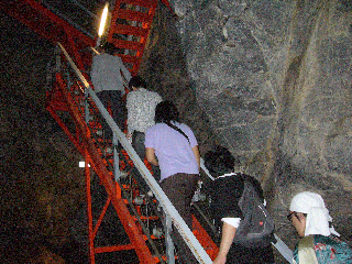 なんて神秘的な光景でしょう !!! 球泉洞で運動した後は〜。(※単に歩いて見て回っただけです…)球泉洞の入り口で記念にパシャリ !!! |